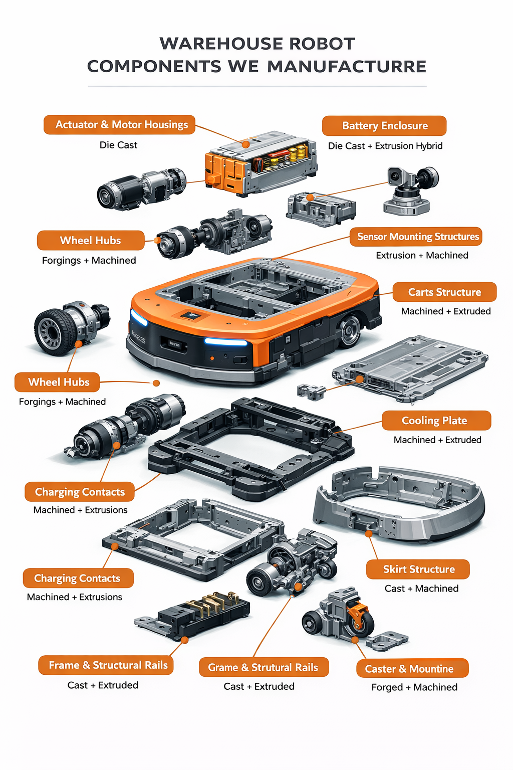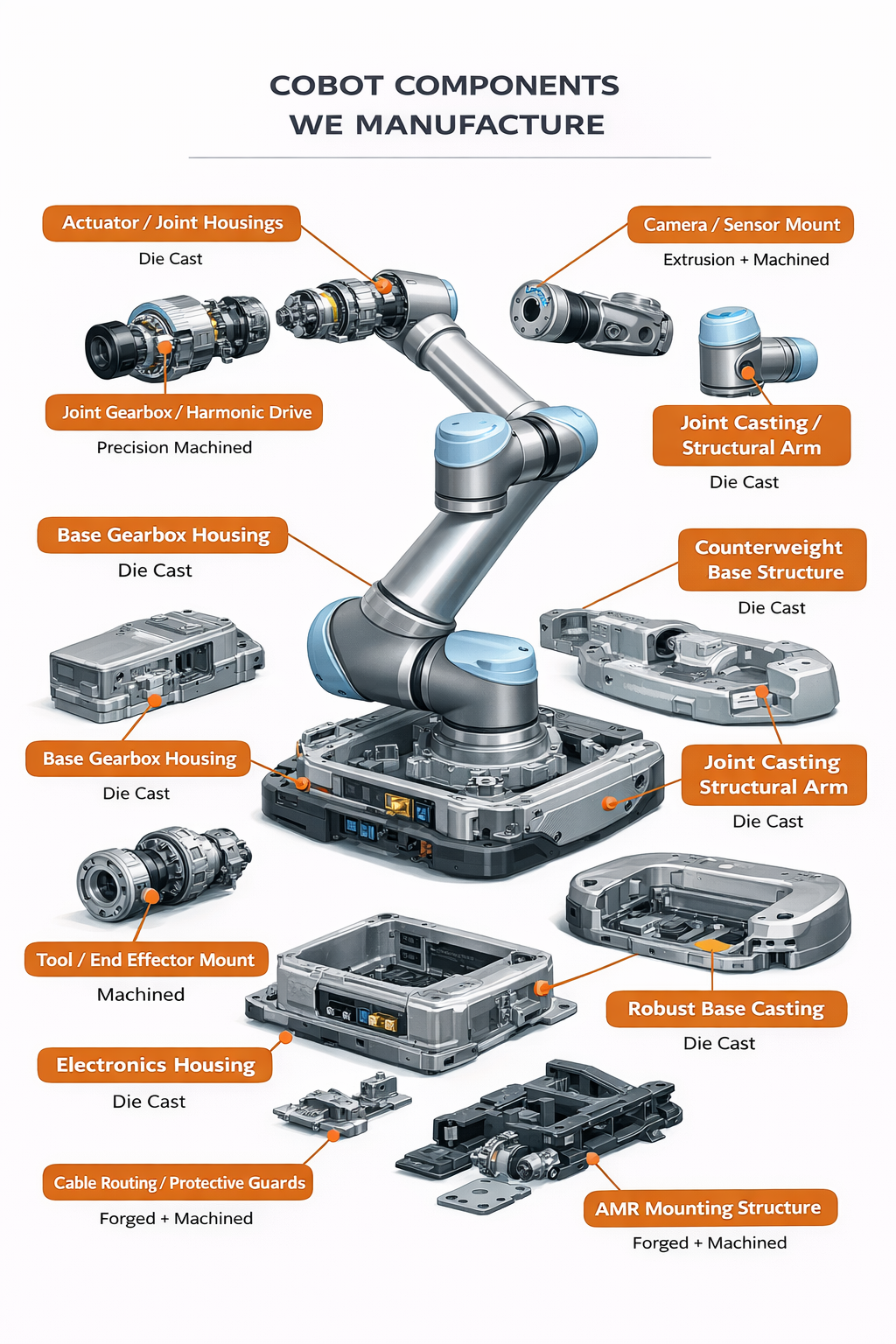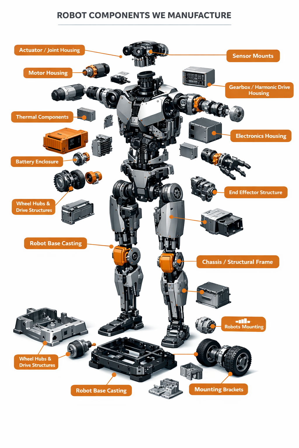 - Lightweight aluminum castings for robotic limbs